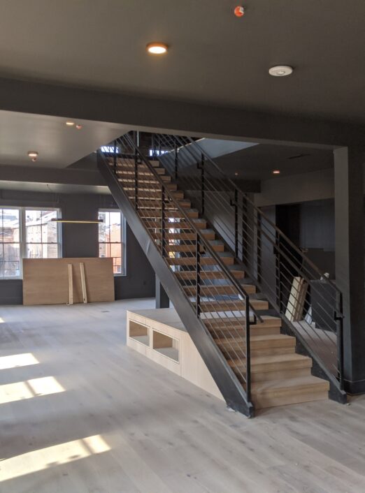 Originally a carriage factory, this industrial building along the streetcar line in the Over-the-Rhine district was rehabilitated as a commercial building with nine offices over its 3-1/2 floors. As this building is a National Register Property built in 1869, many of the historic elements, including the historic staircase, were retained.